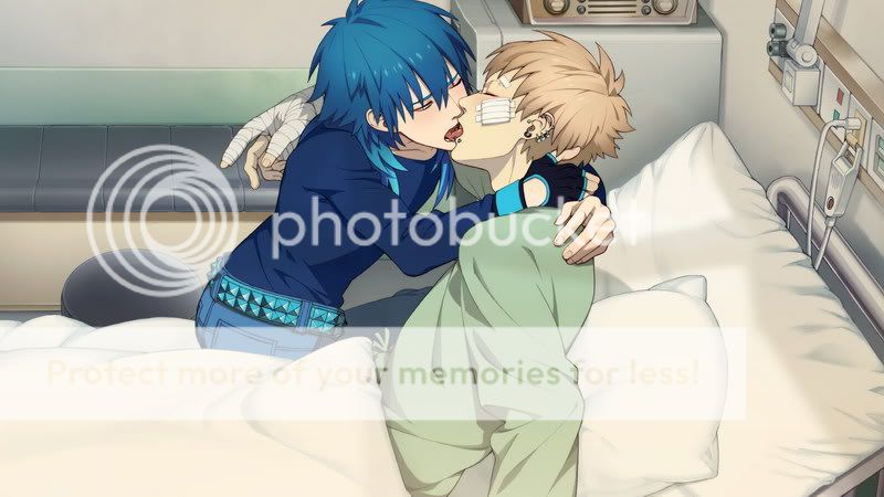 After a while, he awakes in an unfamiliar room, on a bed with Trip gently caressing him. Virus explains that they intend to keep Aoba for themselves instead of handing him over to Tatsuo Toue, since they dearly love him. Much to Aoba's anger, he is again knocked unconscious.