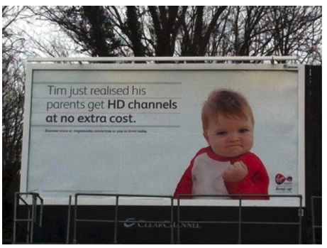 Success kid (Успешный ребенок) — мем-эдвайс, на котором изображен маленький мальчик на пляже, сжимающий в кулаке песок. Британская медиа-компания Virgin Media использовала мем Success Kid в своей рекламной компании. Сопроводив надписью “Тим просто понял, что его родители получат каналы HD без дополнительной стоимости”.