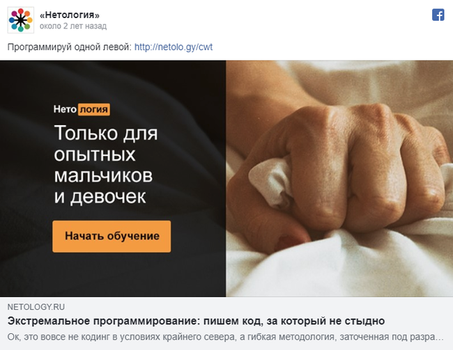 Во-первых , это выделилось из общей массы. Для русскоязычного делового сегмента Facebook формат мемов в принципе не характерен. Много ли их, например, в ленте среднестатистического коммерческого директора? Отнюдь. Вот и притянуло внимание на первом этапе. Как мы видим из результатов, самое низкое количество кликов и самый высокий CPC именно у стандартной картинки.