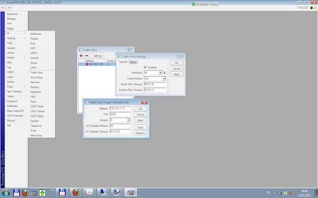 Рассмотрим пример конфигурации Traffic Flow на роутере Mikrotik