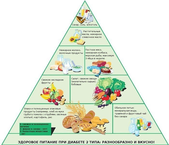 Питание должно быть дробным (малыми дозами 5-6 раз в сутки), что поможет избежать гипогликемии (резкого падения уровня сахара в крови). Разрешается употреблять в любых количествах:
