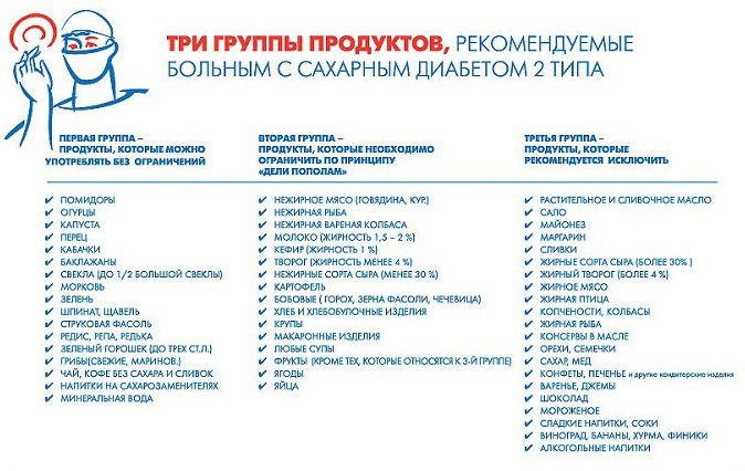 Каждому пациенту требуется особый рацион питания, регулирующей уровень сахара в крови, способствующей уменьшению веса (если заболевание было вызван ожирением), уравновешивающей вещества в организме, снимающей нагрузку с печени, почек, ЖКТ. За основу берется диетический стол № 9 для диабетиков, в общее меню которого вносят определенные коррективы, чтобы сделать его более подходящим для каждой группы людей.
