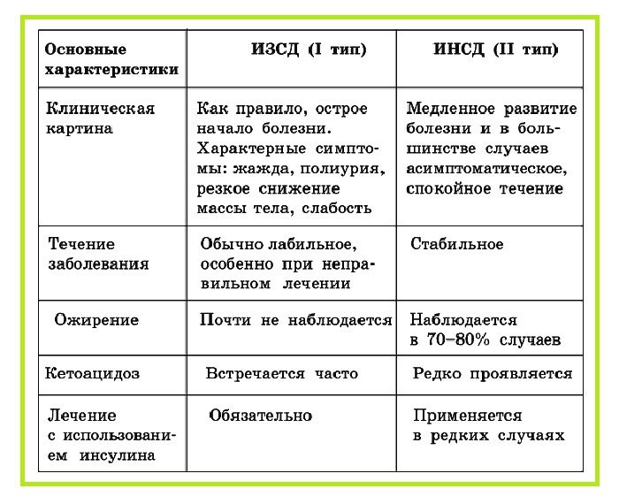 - 1-й тип сахарного диабета (инсулинозависимый) возникает из-за вирусных инфекций на фоне врожденных предрасположенностей к болезни. У больных таким типом, в организме не вырабатывается (или мало вырабатывается) собственный инсулин, а потому для нормального функционирования им необходимо принимать его искусственно. Проявляется в раннем возрасте, поскольку зачастую это заболевание передается по наследству. На 1-й тип приходится 20 % всех случаев.
