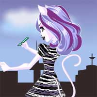Знакома с Катрин ДеМяу Скарис? Она очень похожа на кошку и любит рисовать. Попробуй подобрать ей новый наряд в новой игре Монстер Хай.