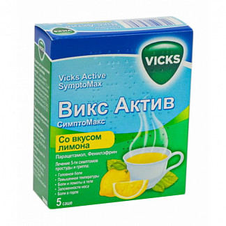 Викс Актив СимптоМакс – комбинированный препарат с противовоспалительным, жаропонижающим и антиконгестивным действием, применяемый для симптоматического лечения гриппа и простудных заболеваний.