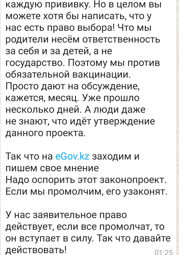 Недавно антипрививочники групповых чатах стали рассылать следующее сообщение