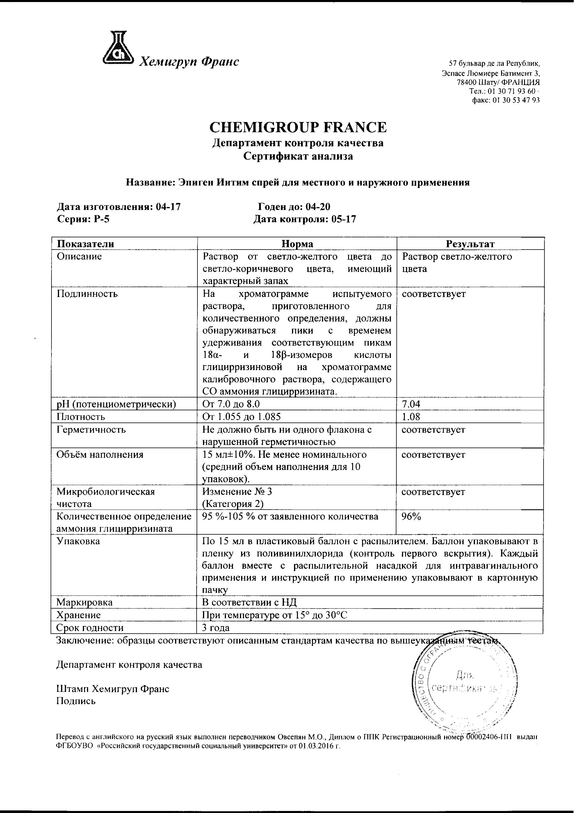 Форма выпуска: Эпиген интим 0,1% 60мл спрей