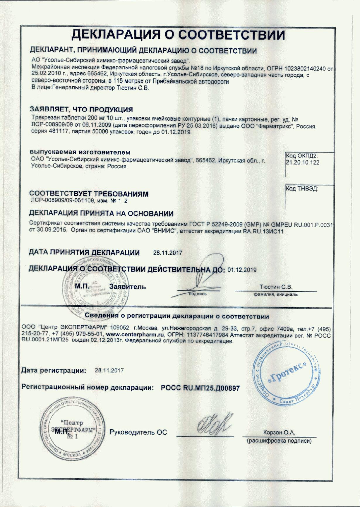 Усолье-Сибирский ХФК (Россия) Препарат: Трекрезолид