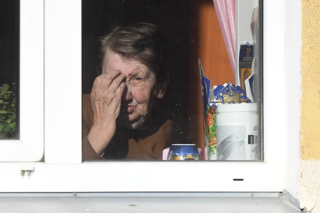 Женщина в окне здания дома-интерната для престарелых в Вязьме. Фото: РИА Новости