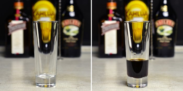 Наливаем 15 мл Калуа в шот: