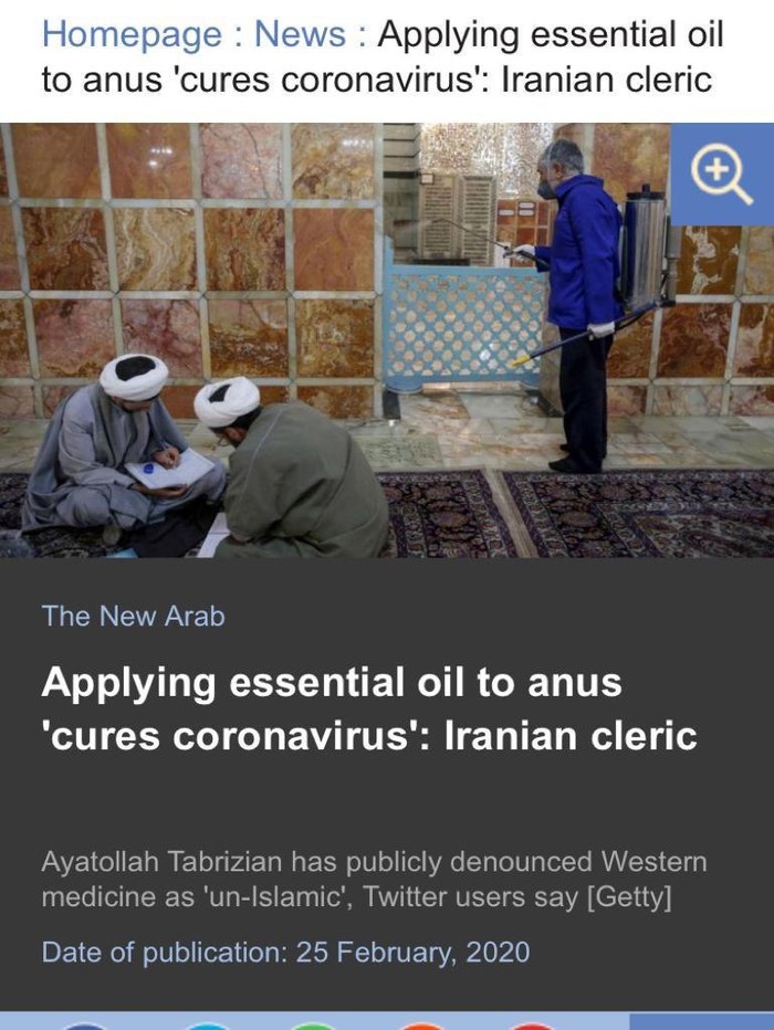 Перевод для тех, кто "London is the capital of Great Britain": Смазывание ануса эфирными маслами лечит коронавирус - Иранский целитель.