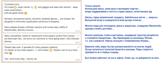 И да, у самого есть инфа оттуда, для меня очень достоверная. Там реально все в масках, и чистота и мало людей. Но японцы организованная нация - они все рекомендации выполняют.