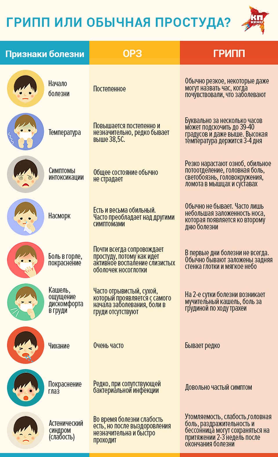 - Для начала гриппа не типичны такие симптомы как насморк или боль в горле.