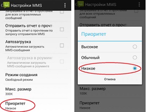 Также необходимо отключить приём и автоматическую загрузку mms- сообщений в настройках приложения, отвечающего за работу с sms/mms.