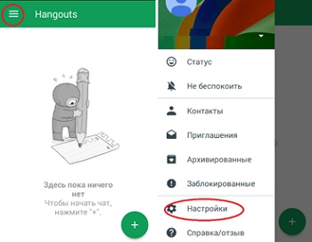 3.2 Если вы используете в качестве основного приложения по работе с sms/mms мессенджер Google Hangout, то необходимо выполнить следующие действия: