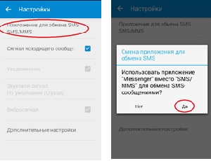 3.3.3 Установите данное приложение основным для обмена sms/mms сообщениями: