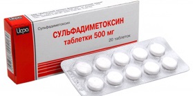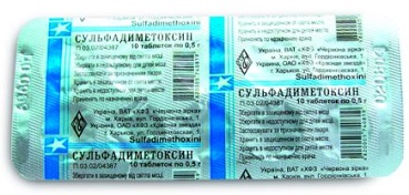 Препарат Сульфадиметоксин представляет лекарственные средства фармакологической группы антибактериальные медикаменты сульфаниламиды.
