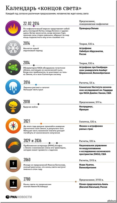 На нашу долю еще 2 конца света осталось. Эх, а как теперь с грустью вспоминаются те времена в 1999. - компьютеры встанут, дьявол придет. А конец света по календарю Майя 21.12.12? Были же деньки.