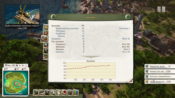 - Целая эпоха. Вы пройдете целое столетие, освоите технологии прошлого и будущего, и сможете превратить банановую республику в процветающее островное государство в игре.