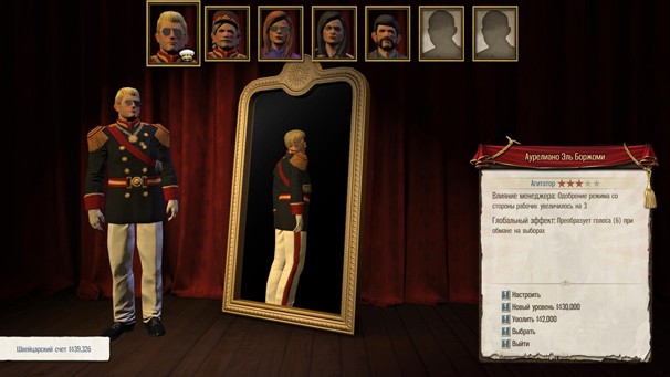 И здесь нас ждет еще один приятный сюрприз — династия Эль-Президенте. Про убогую настройку новых членов семьи тактично промолчим, а вот их качества окажутся очень полезными. Например, знаменитость 1-го уровня дает 5% прибавки к помощи зарубежных сил — а что будет на пятом? Агитатор завоевывает голоса на выборах, скряга понижает стоимость строительства. Вполне реально вырастить семейку с максимальной пользой и назначить на ключевые управленческие посты. К тому же наличие многочисленной родни сглаживает неразбериху с огромными историческими рамками: от 1914 года до 2010-го и дальше. Никто не запретит держать одного и того же бессмертного диктатора на посту хоть сотню лет, но и сменить его никто не помешает.