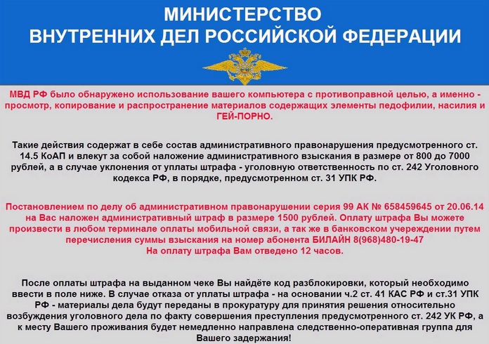 - Появление сообщений о том, что через пару дней ноутбук или компьютер будет заблокирован. Или о том, что нужно обновить Adobe Flash Player (разумеется, этого делать не следует).
