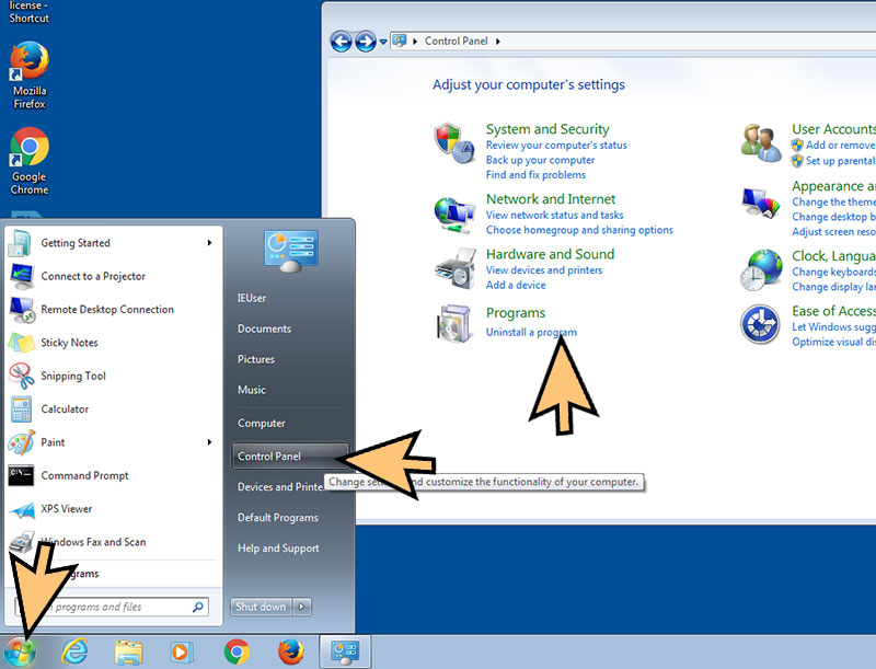 Перейдите на Панель управления и нажмите на Удаление программы для удаления программного обеспечения.