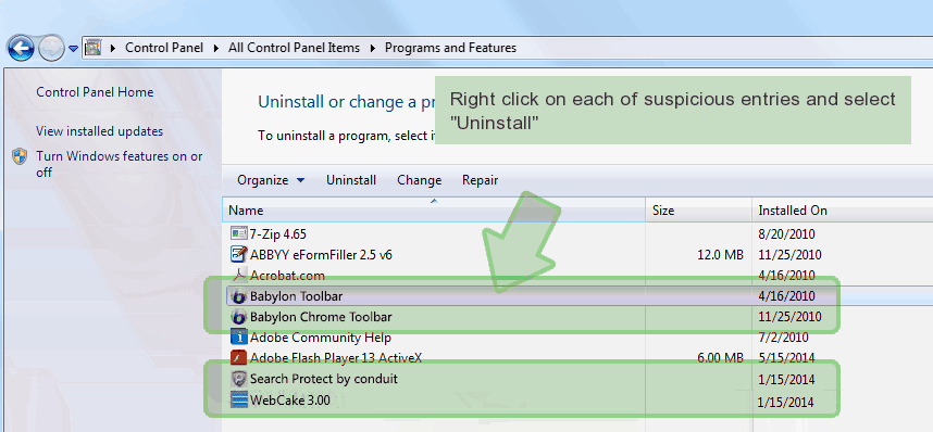 Процесс удаления рекламного ПО с зараженного компьютера одинаков для всех версий операционной системы Windows, начиная Windows XP и заканчивая Windows 10. В первую очередь необходимо проверить список установленных программ на вашем компьютере и удалить все неизвестные, ненужные и подозрительные приложения.
