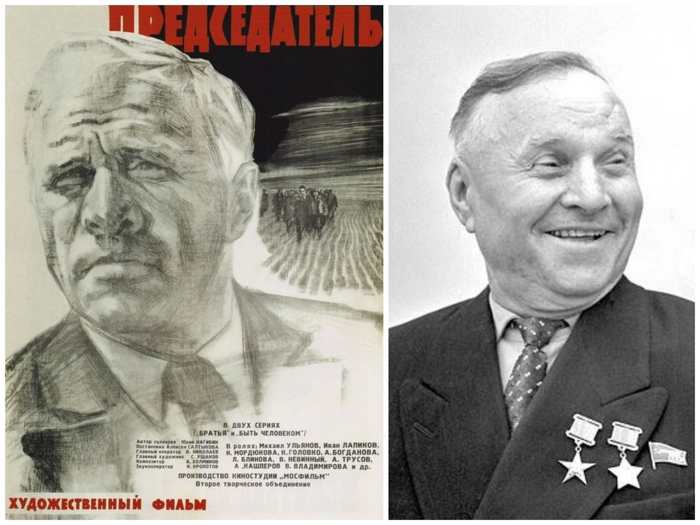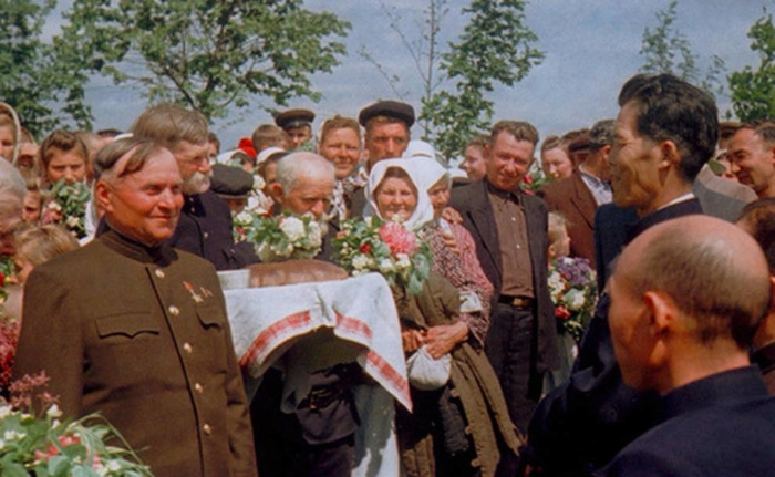 1955 год. Колхоз уже знаменит на весь Союз. Во время визита иностранной делегации. Орловский слева, ещё пока с одной звездой героя.
