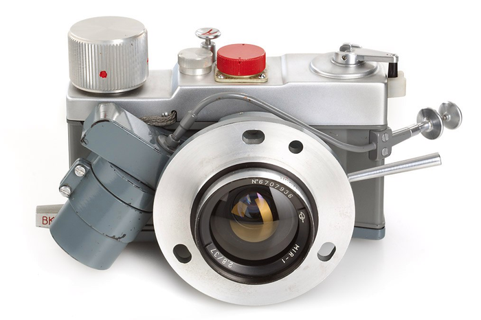 Первая модель космической камеры базировалась на обычном Ленинграде. Камера имеет необычный овальный формат негатива, пружинный мотор, электрическое реле затвора. Камера сделана с учетом использованния ее в толстых перчатках.