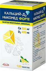 Кальций-д3 никомед форте 120 шт. таблетки жевательные лимон