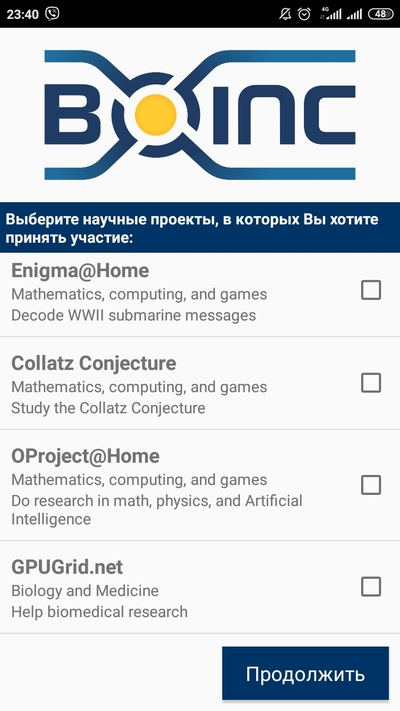 Существует несколько научных проектов: Rosetta - исследования белка, SETI (закрыт недавно) - поиск внеземной жизни, Einstein - гравитационные волны, LHC - коллайдер и т.д.