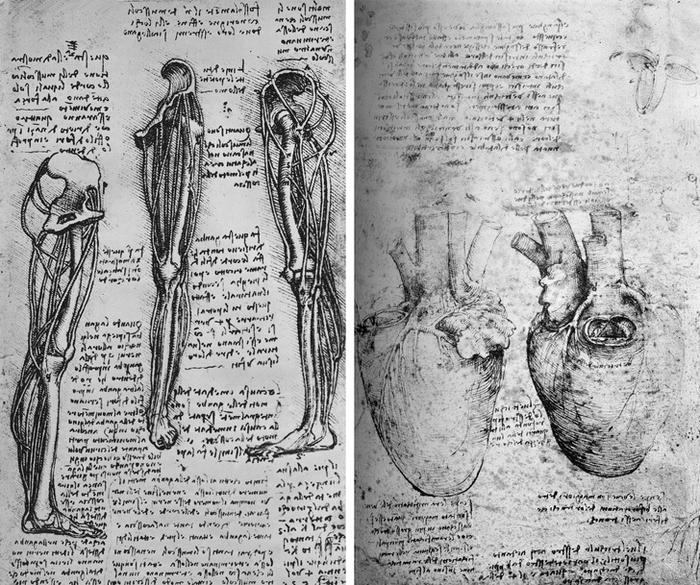 Леонардо да Винчи увлекался и анатомией. Художник получил разрешение проводить анатомические вскрытия в местном госпитале. Так получился целый сборник анатомических тетрадей с подробным описанием человеческого тела. В своих записях да Винчи пытался понять, как устроены мышцы человека, и размышлял над созданием протезов.