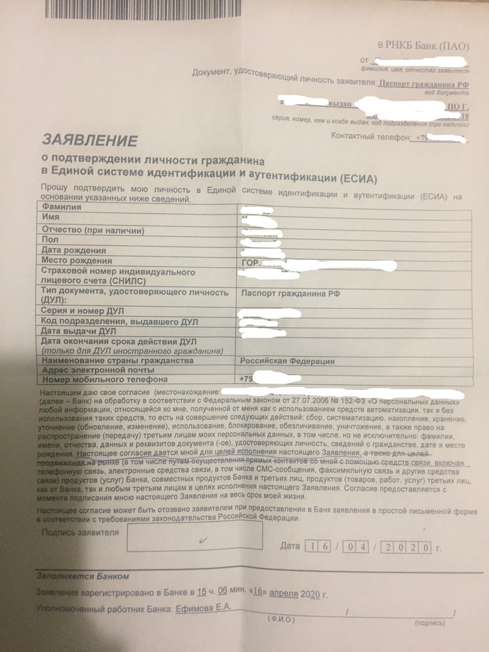 На фоне коронавируса все гос. учреждения не работают с людьми напрямую. Документы подать во всевозможные инстанции предлагают через портал Госуслуги. А для того чтобы подтвердить свою личность этот портал предлагает обратиться в Центры обслуживания пользователей, в моем случае это банк РНКБ.