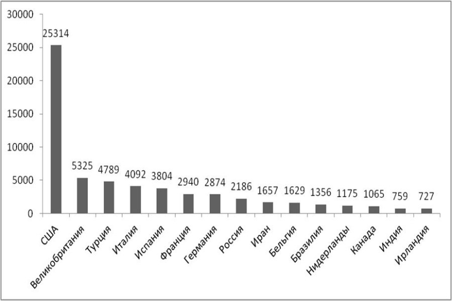 Сейчас в абсолютных цифрах (то есть не в пересчете на 100 тысяч населения), на первом месте по числу инфицированных находятся США — там это 558 тыс. человек. Далее с большим отрывом следуют Испания — 166,8 тыс. случаев и Италия с 156,3 тыс. случаев. В этих странах зарегистрировано и наибольшее количество смертей пациентов с коронавирусом: в США это 22,1 тыс. случаев, Италии — 19,8 тыс. и в Испании 17,2 тыс.