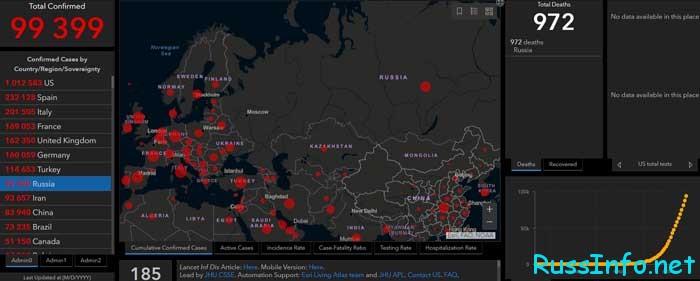 - страны в которых подтвержен вирус – 185.