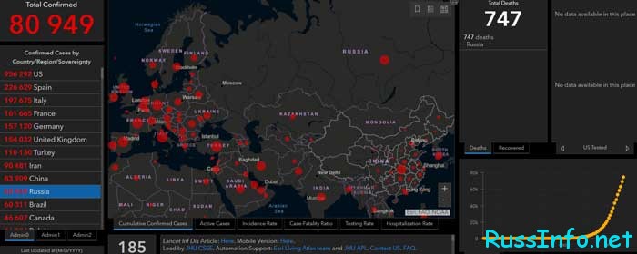 Так же предлагаем Вам посмотреть таблицу распростарнения коронавируса в Мире, где можно увидеть количество инфицированных людей в каждой стране, а так же узнать сколько людей умерло и выздоровело.