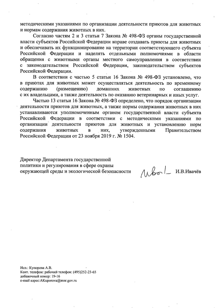 Не хочу это так оставлять! Копию этого ответа я направляю в Генеральную прокуратуру. Я считаю, что этот ответ свидетельство бездействия, отсутствия реакции на обращения граждан, что может повлечь угрозу здоровью и жизни сотен и тысяч животных.