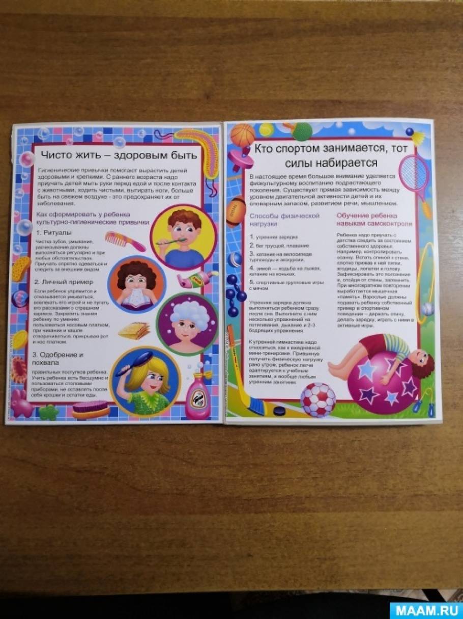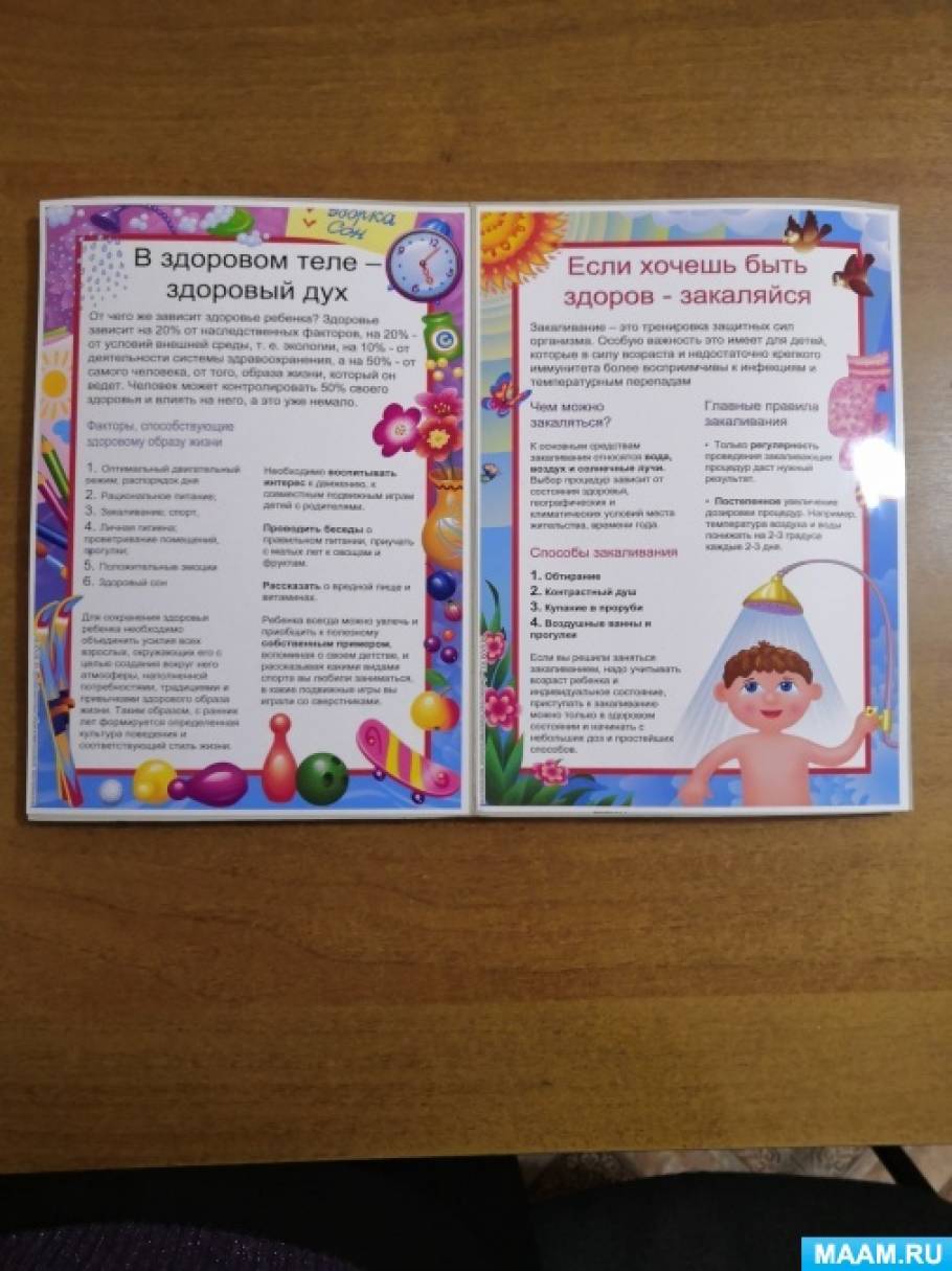 Папки-передвижки – эффективный способ донесения актуальной информации о воспитании и развитии детей, который активно применяется в детских садах. Изделие представляет собой двухстороннюю книжку-гармошку формата А4. Основу папки можно сделать своими руками из листов картона или пластиковой потолочной плитки, а материал скачать на нашем сайте, распечатать и вставить в файлы-кармашки.