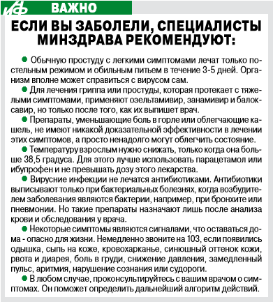 - Некоторые симптомы являются сигналами, что оставаться дома - опасно для жизни. Немедленно звоните 103, если появились одышка, сыпь на коже, кровохарканье, синюшный оттенок кожи, рвота и диарея, боль в груди, снижение давления, замедленный пульс, аритмия, нарушение сознания или судороги.