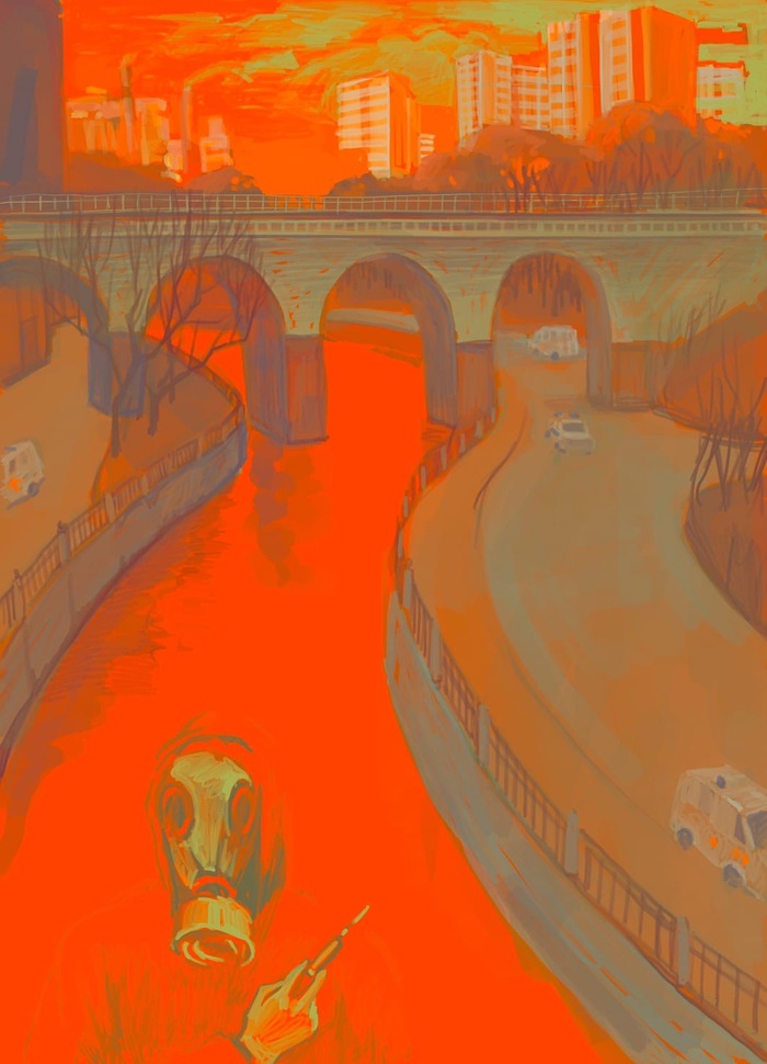 После этого был еще этап с черновиком, цветом и общим концептом, но файлы с ним я потерял, либо просто не смог найти в своем бардаке папок. Поэтому, сразу покажу свой финал(немного размыл, чтобы никто не решил напечатать себе, как в истории ранее, которую я публиковал):