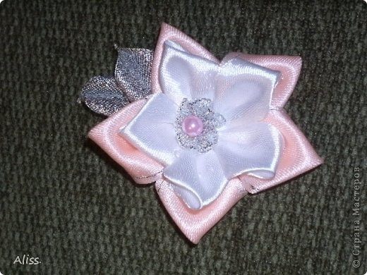 Получается лепесточки принимают форму за счет проволоки? Надо такую ленточку посмотреть у нас в магазинах и попробовать. Спасибо! Буду пробовать. Цветы очень красивые! И на первый взгляд не так трудно их делать. Спасибо еще раз!