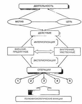 5)результат (может не соответствовать цели). Деятельность состоит из действий, например, учебная деятельность включает в себя: запись лекций, чтение книг, решение задач и пр.