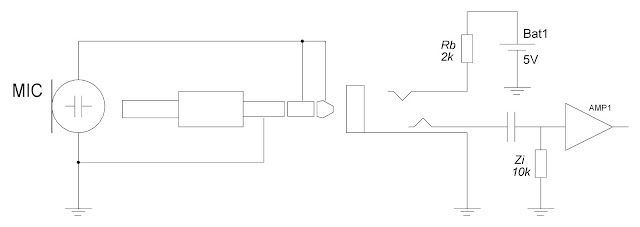 Примечание 2: обычно напряжение питания микрофонов, подключаемых к звуковой карте составляет около 5 вольт, подаваемых через резистор 2,2 кОм. Микрофонные капсюли обычно не восприимчивы к к постоянному току от 3 до 9 вольт, и будут работать (хотя уровень подаваемого напряжения может повлиять на выходное напряжение микрофона).