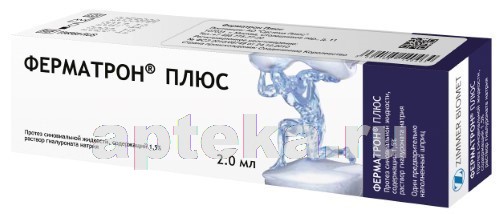 Ферматрон ® Плюс Протез синовиальной жидкости представляет собой прозрачный стерильный раствор 1,5% высокомолекулярного гиалуроната натрия в солевом растворе фосфатного буфера, помещенный в предварительно заполненный шприц для однократной внутрисуставной инъекции в синовиальное пространство сустава.