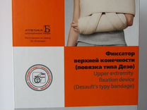 Фиксатор верхней конечности изготовлен из комбинированных материалов. Состоит из трех частей: манжеты которой оборачивается предплечье, крестообразно сшитых лент с застежкой велкро, располагающихся перекрестьем на передней поверхности грудной клетки и фиксирующих конечность в согнутом положении (угол в локтевом суставе 90 градусов) и широкой ленты обеспечивающей фиксацию конечности к торсу. Повязка типа Дезо обеспечивает надежную фиксацию верхней конечности к грудной клетке. Обеспечивает обездвиживание плечевого сустава, акромиально-ключичного сочленения, лопатки. Создает разгрузку капсулы плечевого сустава, мышц надплечья.