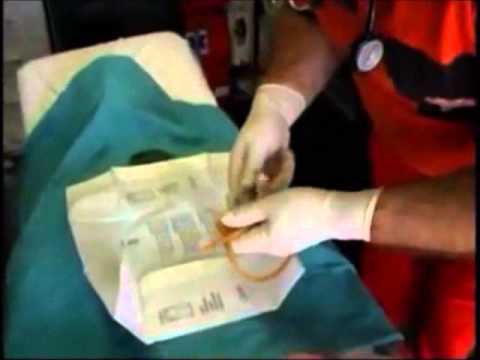 - правой рукой берется зонд и при помощи попеременного вращения вводится в уретру, примерная глубина ввода равна 5см;