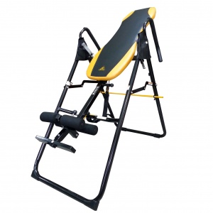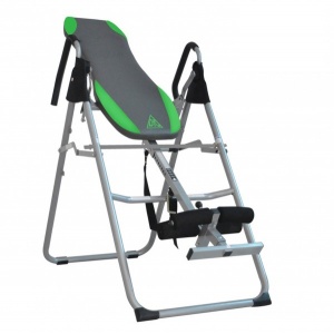 - Инверсионные столы – предназначены для щадящей растяжки позвоночника, а также для снятия болей в спине после изнурительных тренировок. Конструкция представляет собой подвешенную скамью с фиксаторами для обратного виса. Корпус изготовлен из стали, а обивка – из кожи.
