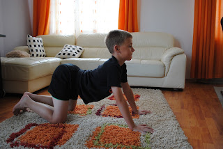 Упражнение на выгибание и скругление спины, стоя на четвереньках – тут все обычно, встали на колени и оперлись на руки, поочередно выгибаем спину и затем сгибаем (скругляем).