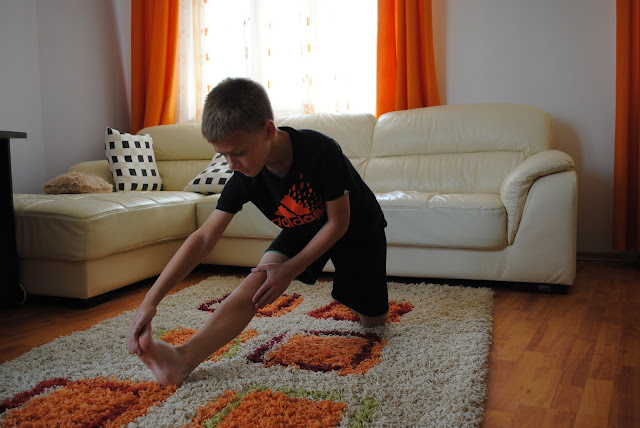 На видео характерная для нас растяжка – но его цель скорее продемонстрировать основные упражнения и донести информацию. Обычно дети тянуться самостоятельно и под музыку в наушниках. Начинали с растяжки под футбол и фильмы, но затем они перешли к музыке – так говорят, что меньше отвлекаются. Подчеркну, что на видео отдельная тренировка, посвященная растяжке. Здесь смесь динамических и статических упражнений, но большая часть все же статические. Если вы хотите разогреться/потянуться перед тренировкой/матчем/соревнованиями, то важно использовать только динамические упражнения.