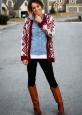 - Брюки. Узкие джинсы, леггинсы, брюки-сигареты, клёши. Дополняя любой из этих вариантов простой футболкой, рубашкой, этнической блузой, вязаным кардиганом и даже строгими пиджаком, вы получите стильные образы "на каждый день". Сочетайте ваши ковбойские сапоги с простой одеждой спокойных цветов, ведь главным украшением и акцентом образа должна быть именно обувь!